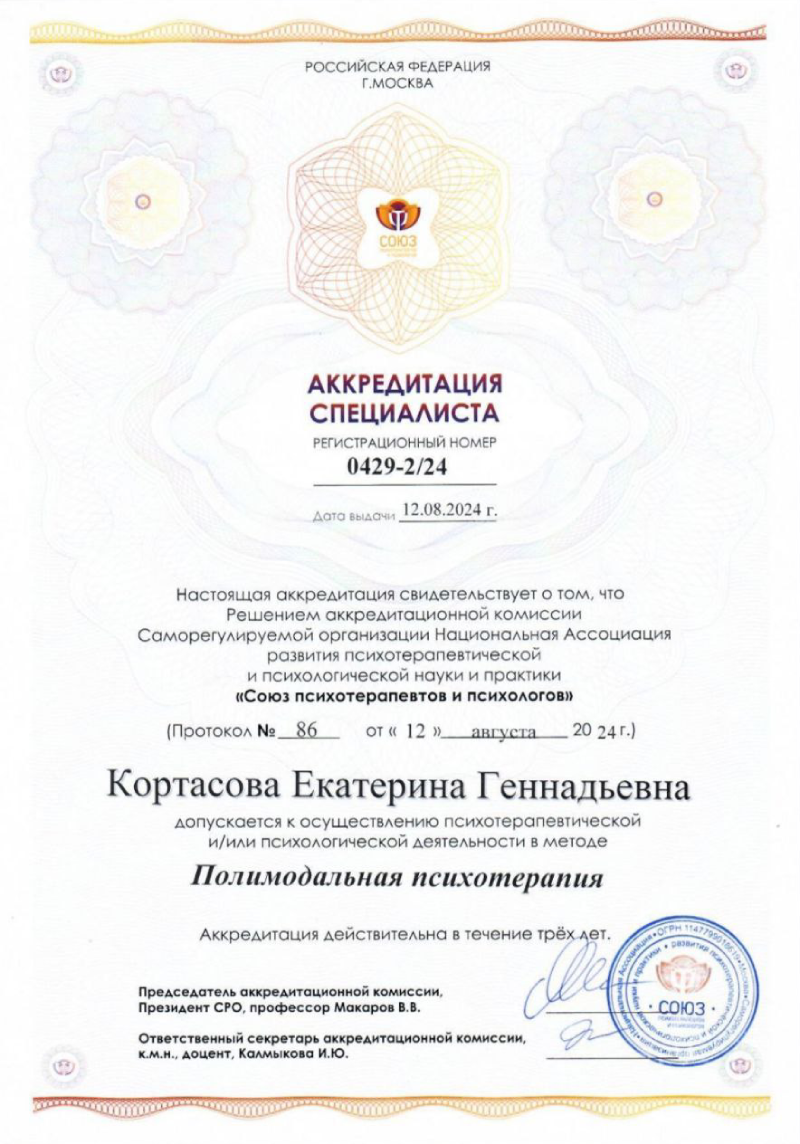 Действительный Член Общероссийской Профессиональной Психотерапевтической Лиги и Национальной Ассоциации EMDR